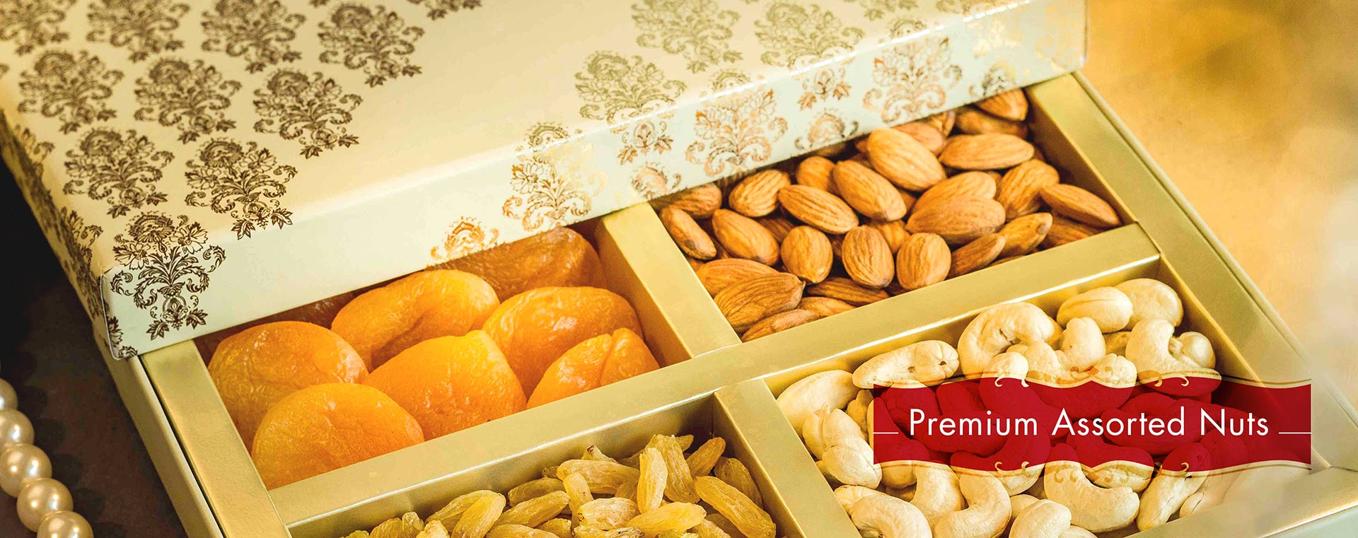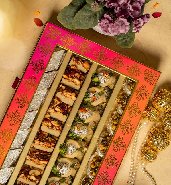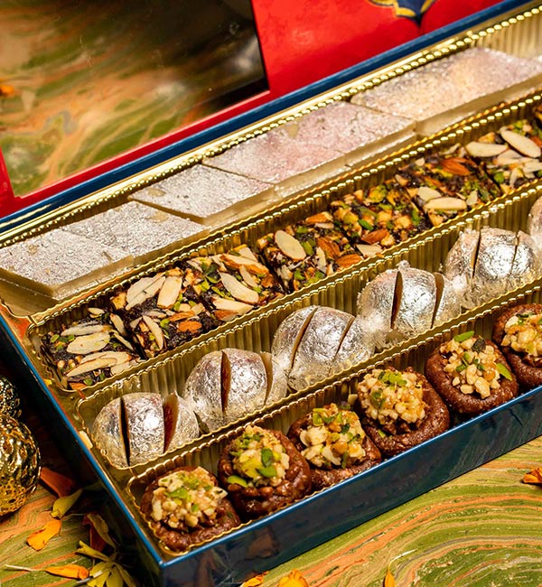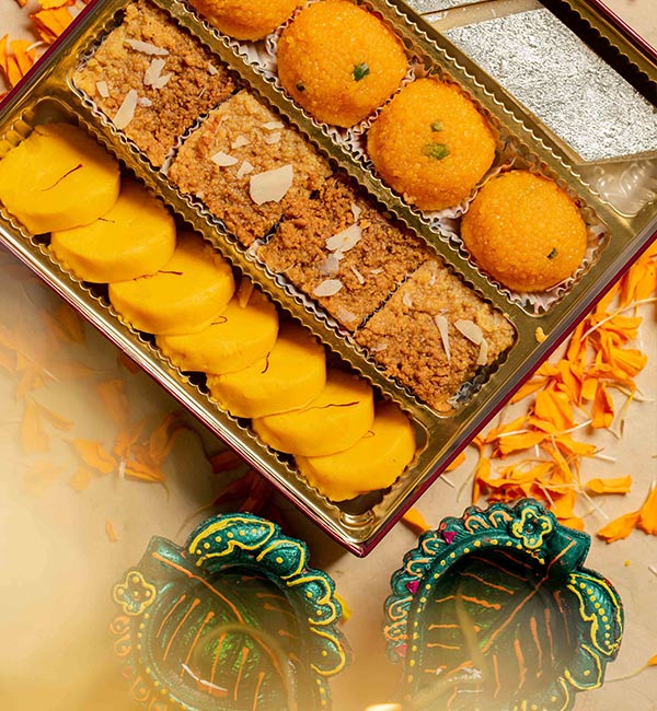 From authentic hand crafted Indian Mithai and traditional Savouries to our delectable Namkeens and Nuts along with our Gift Hampers and Gourmet Assorted Boxes.