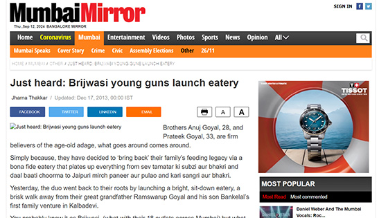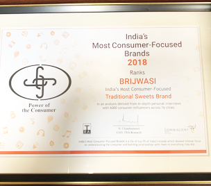 In 2017 Brijwasi Sweets was listed and awarded as "India's Most Attractive Brand" in the category of Retail - Traditional Sweets by TRA Research.